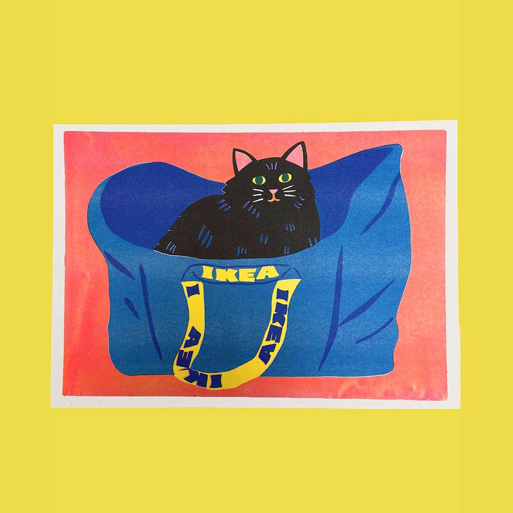 Naomi Wilkinson A3 Ikea Cat Black Riso Print