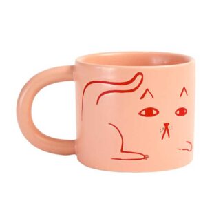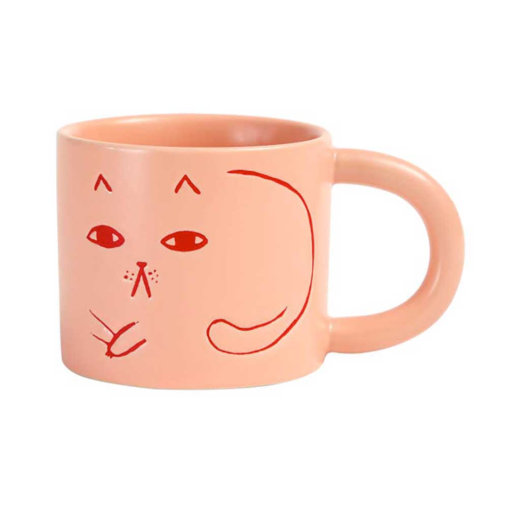 Designed for the purrrrfect coffee break. This beautifully sturdy and tactile candy-pink mug has two debossed playful cat images – just right for warming your hands ready to play with a passing kitten.